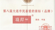 通過市工商局和國家統計局大連調查隊合作,以及《大連日報》、《大連晚報》、《新商報》等媒體合作,經過一個月的調查統計工作,最終大連“曉芹”商標(品牌)獲得大連市政府頒發的“市民喜愛的商標”稱號證書、牌匾。